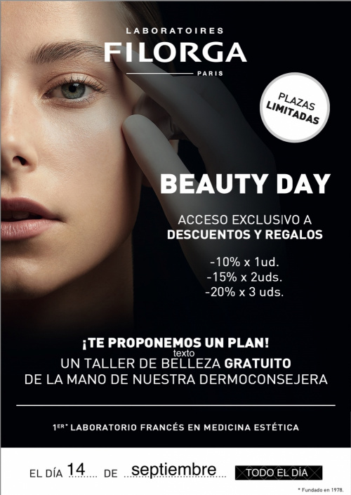 El 14 de septiembre te invitamos a una sesión en la que nuestras expertas en dermocosmética te realizarán un análisis del estado de tu piel y te aplicarán una rutina personalizada a base de productos Filorga. No pierdas la oportunidad de probar esta exclusiva marca basada en técnicas de Medicina Estética y beneficiarte de sus promociones especiales.